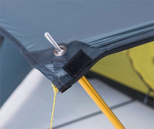 For at gøre teltene i Pro-serien så lette som overhovedet muligt, har Helsport udviklet to nye typer materiale til oversejlet, nemlig Helsport Rainguard® Pro og så den ekstremt lette Rainguard® Superlight, som er en blot 15 D Nylon Ripstop. Begge tekstiler er vævet af den absolut fineste type nylonfiber og belagt på begge sider med en helt ny silikonebelægning. Resultatet er fuldstændig vandtætte materialer, der er uhørt lette og samtidig fantastisk slidstærke. Fx har Helsport Rainguard® Pro mindst 6 gange højere rivstyrke end traditionelle nylon- eller polyesteroversejl! Alle barduner kan bindes op og fikseres, så de ikke hænger og flagrer i vinden og pisker mod oversejlet.