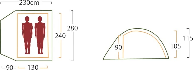 Umiddelbart bag indgangene findes en meget rummelig apsis med 90 cm. bredde i det meste af teltets længde. Hermed bliver der god plads til både al bagagen og madlavning i apsis, når vejret viser tænder. Og skulle man ønske en endnu større overdækket areal netop til fx madlavning eller hvis man er bundet til teltet pga. dårligt vejr, kan inderteltet hurtigt klipses af én af stængerne og herefter skubbes til side i kabinen – eller helt afmonteres, således man får et endnu større overdækket areal!