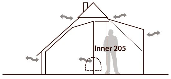 Inderteltet er lavet med to adskilte sovekabiner, men væggen imellem de to kabiner kan dog åbnes op, hvis der ønskes én stor sovekabine. Alternativt kan den ene halvdel af inderteltet lynes ned og rulles sammen, hvis man fx kun er tre overnattende og ønsker mest mulig gulvplads i teltet.